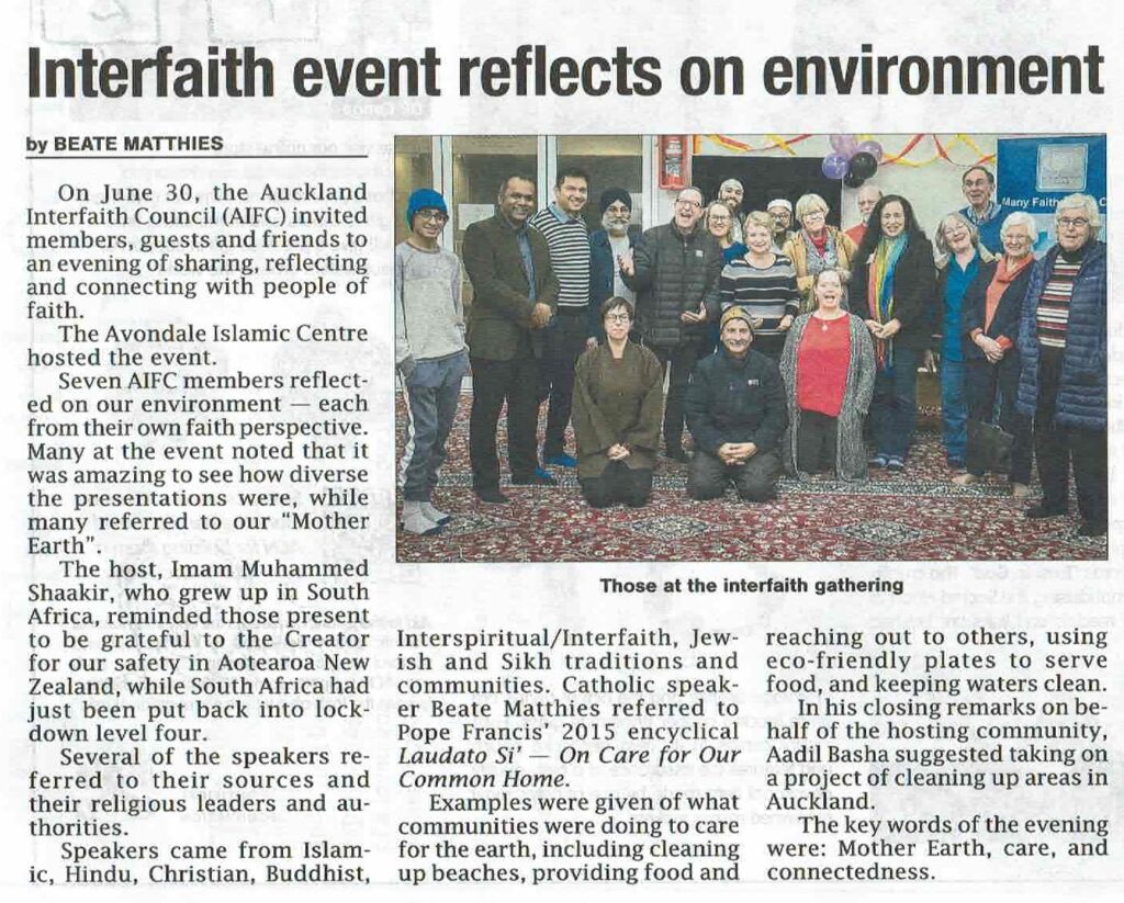 Preserving our Environment – Interfaith Post author:Beate Matthies Post published:August 6, 2021 Post category:Articles / Environment / Interfaith - Initiatives & Resources / News / Past Events / Resources Event organised by the Auckland Interfaith Council NZ Catholic, 25 July – 07 August 2021 Tags: AIFC, Environment, Interfaith Read more articles Previous PostDebbie Miller Next Post10 Green Commitments You Might Also Like Quote of the Day September 9, 2023 The Prodigal Son March 29, 2025 Horizons – Muffin Talk with Dr Joe Grayland September 14, 2025